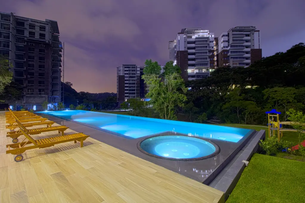Piscina y jacuzzi con barra contigua en Ciudad de Guatemala