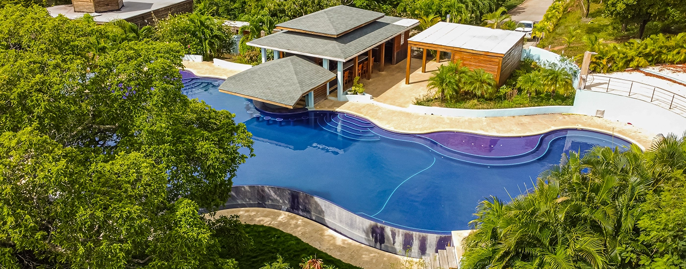 Como parte de un proyecto que ofrece servicio a varias residencias, El diseño de esta piscina debió tomar en cuenta no solo la cantidad de usuarios, sino la diversidad de necesidades de los mismos; una de ellas era la capacidad. Para ello se diseñó una piscina de tamaño considerable de formas irregulares con varios espacios, uno de los cuale es un lagartero con jets para los niños.