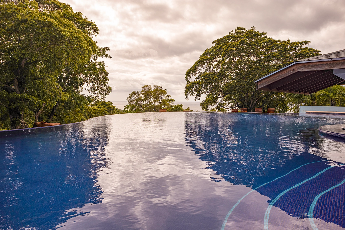 En cuanto al área de socialización, esta se resolvió por medio de unas bancas que se ubican en todo el cuerpo de agua y unos bancos colocados alrededor del bar que da servicio a la piscina. En su interior se instaló mosaico de color azul oscuro, el mismo tono que se observa en el infinity que da al mar en el fondo.